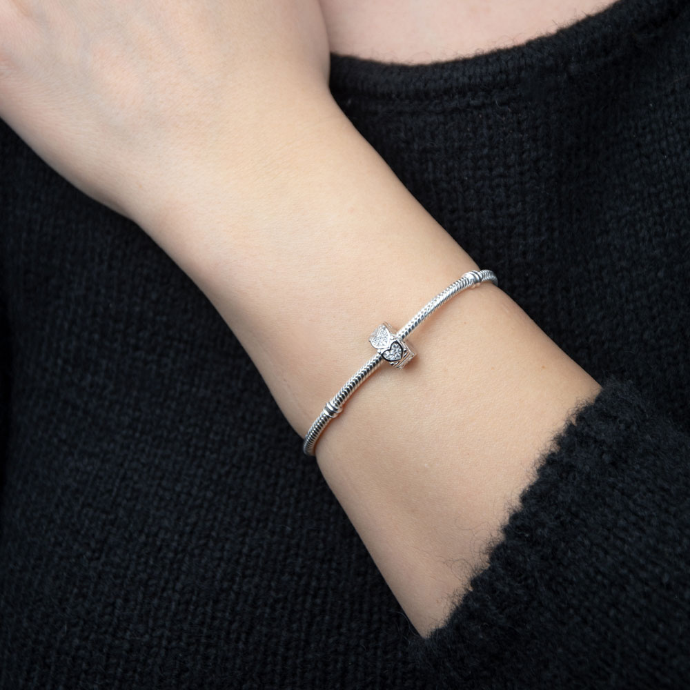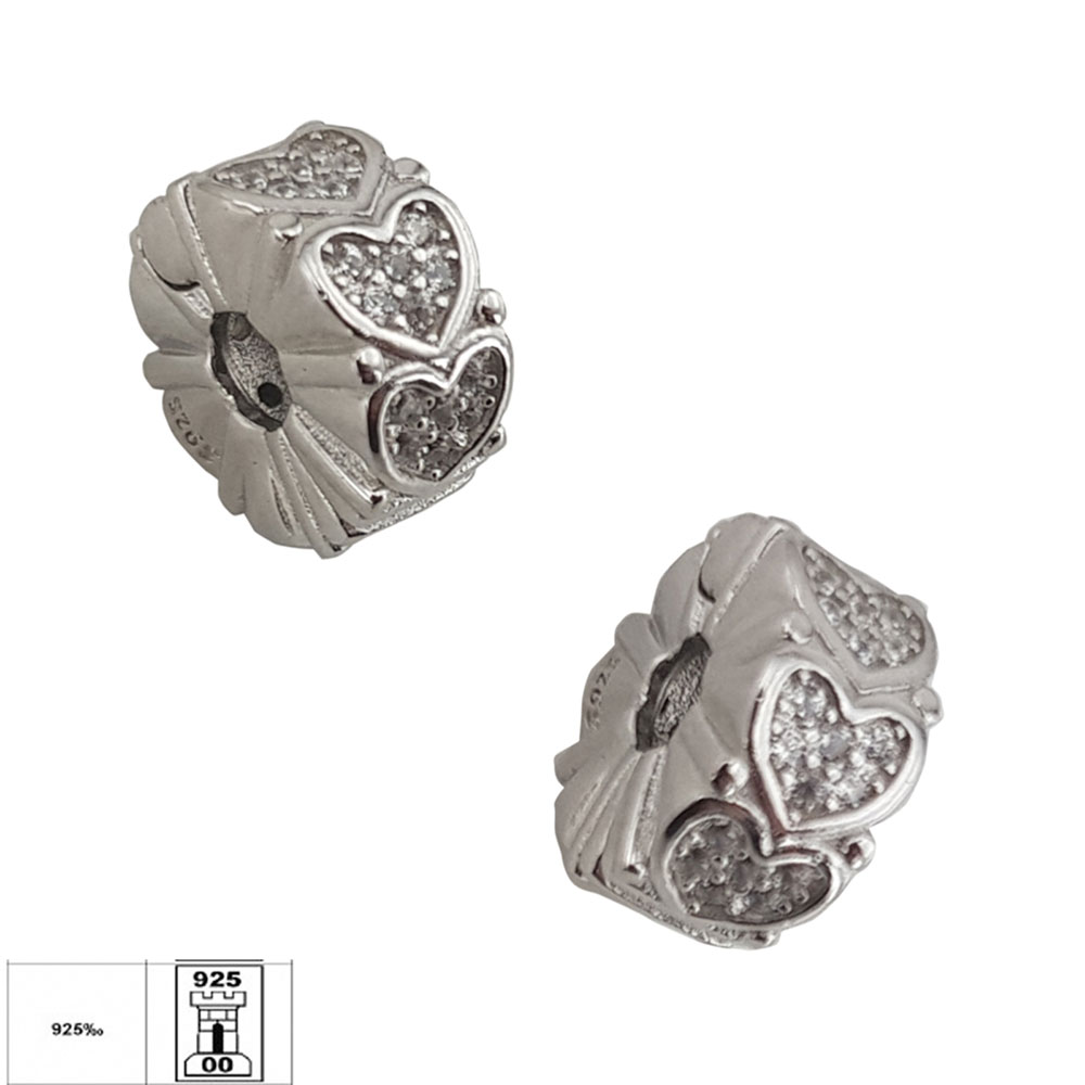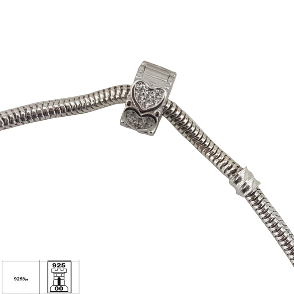 Descoperiti frumusetea si rafinamentul bijuteriilor din argint 925 cu acest talisman opritor inimioare, o piesa exclusiva de la Rankine. Conceput sa adauge o nota de romantism oricarei bratari, acest talisman este nu doar un accesoriu frumos, dar si functional. Modelul stopper ajuta la fixarea celorlalte elemente ale bratarii, prevenind alunecarea acestora.