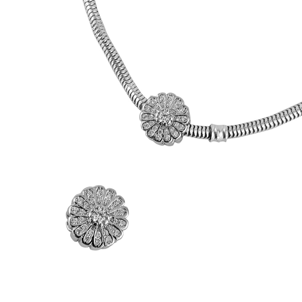 Imbogateste-ti colectia de bijuterii cu Talismanul Argint 925 Opritor Margareta, o piesa de exceptie care emana eleganta si rafinament. Acest talisman este realizat din argint 925 de cea mai inalta calitate, avand un design sub forma de margareta, decorata cu zirconii albe stralucitoare. Este compatibil cu majoritatea bratarilor de tip charm, oferind un plus de stil si personalizare accesoriilor tale.