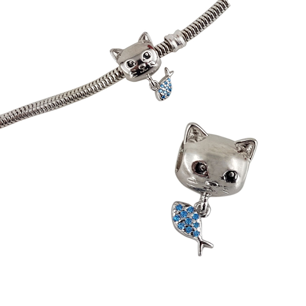 Adu un strop de farmec si originalitate accesoriilor tale cu Talismanul din Argint 925 - Pisica si Peste. Realizat meticulos din argint 925, acest talisman prezinta o pisica delicata, accentuata de un pestisor stralucitor, decorat cu zirconii aquamarin. Design-ul unic face din acest talisman piesa de rezistenta a oricarei bratari charm.