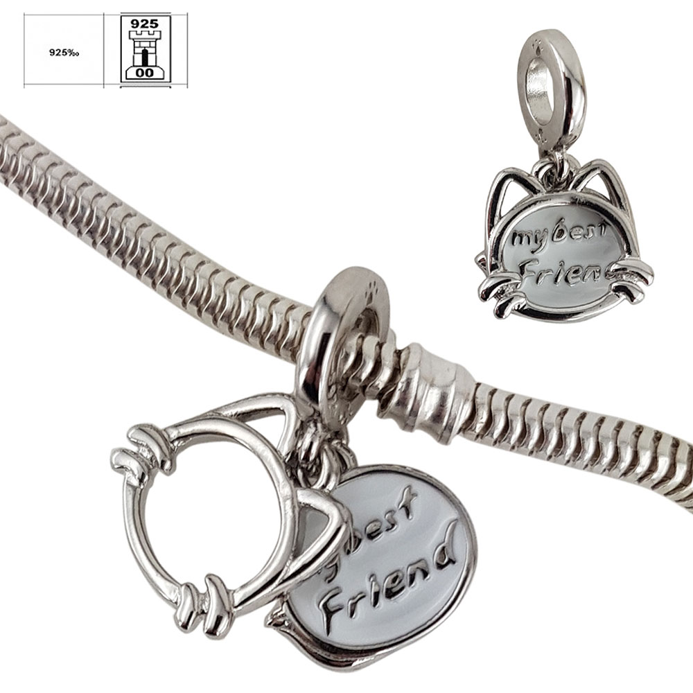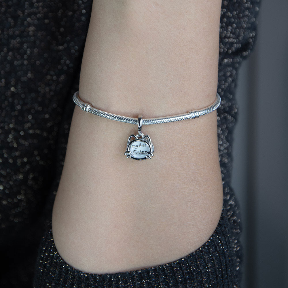 Imbogateste-ti colectia de bijuterii cu acest talisman din argint 925, perfect pentru orice bratara de charm. Talismanul nostru unic model pisicuta cu email alb adauga o nota de eleganta si personalizare oricarei bratari.