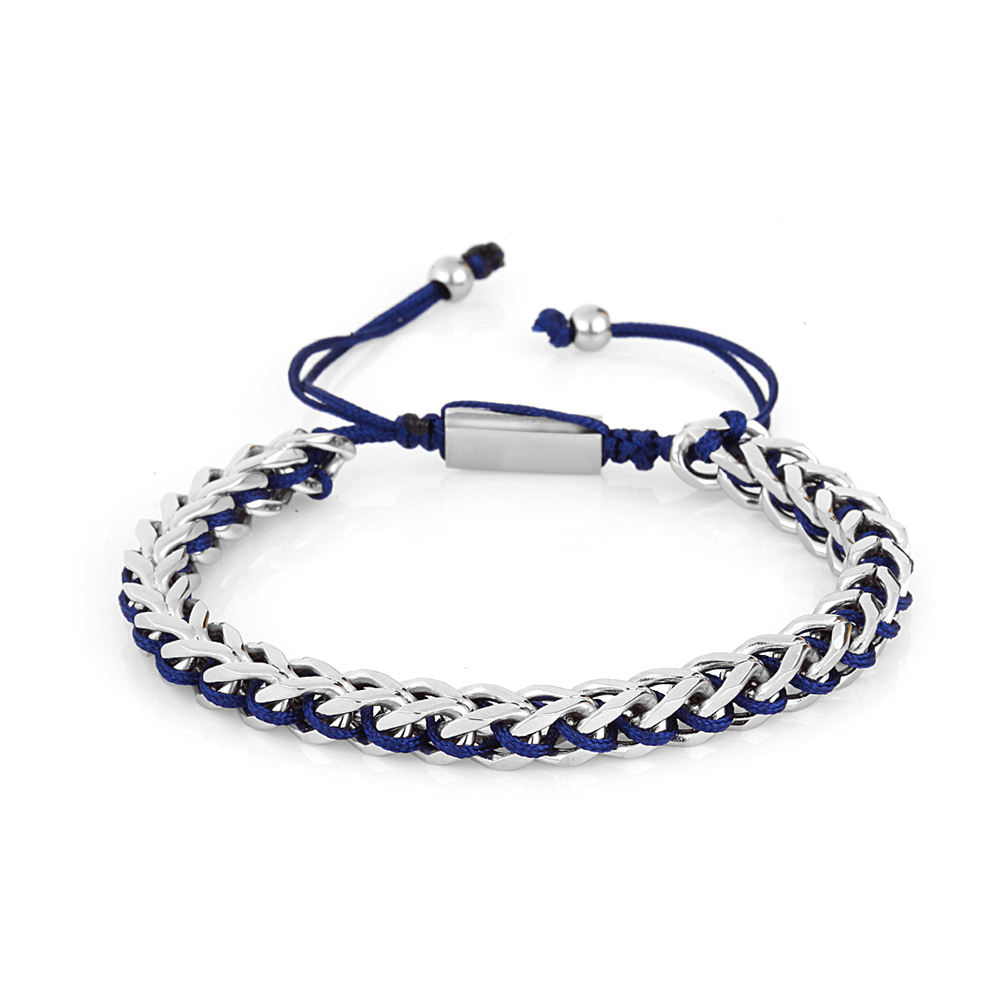 Completeaza-ti stilul cu o bratara eleganta si moderna, semnata Santa Barbara Polo, un accesoriu ideal pentru barbatii care apreciaza calitatea si rafinamentul. Aceasta bratara imbina perfect otelul inoxidabil argintiu cu snurul textil albastru, oferind un contrast vizual atractiv si o rezistenta sporita.