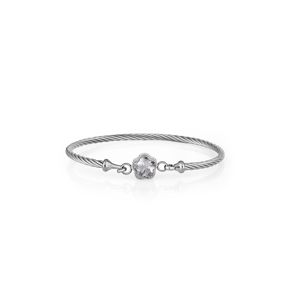 Bratara are o structura impletita, conferindu-i un aspect delicat, dar robust, iar elementul central este decorat cu zirconii stralucitoare, care adauga un efect de lux si rafinament. Sistemul de inchidere cu carlig asigura o fixare sigura si confortabila, permitandu-ti sa o porti intreaga zi fara griji.
