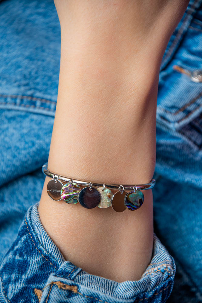Realizata din otel inoxidabil, bratara garanteaza durabilitate si rezistenta la coroziune, pastrandu-si aspectul impecabil in timp. Este decorata cu elemente abalone, ce adauga un joc subtil de culori si reflexii, conferind unicitate fiecarui model.
