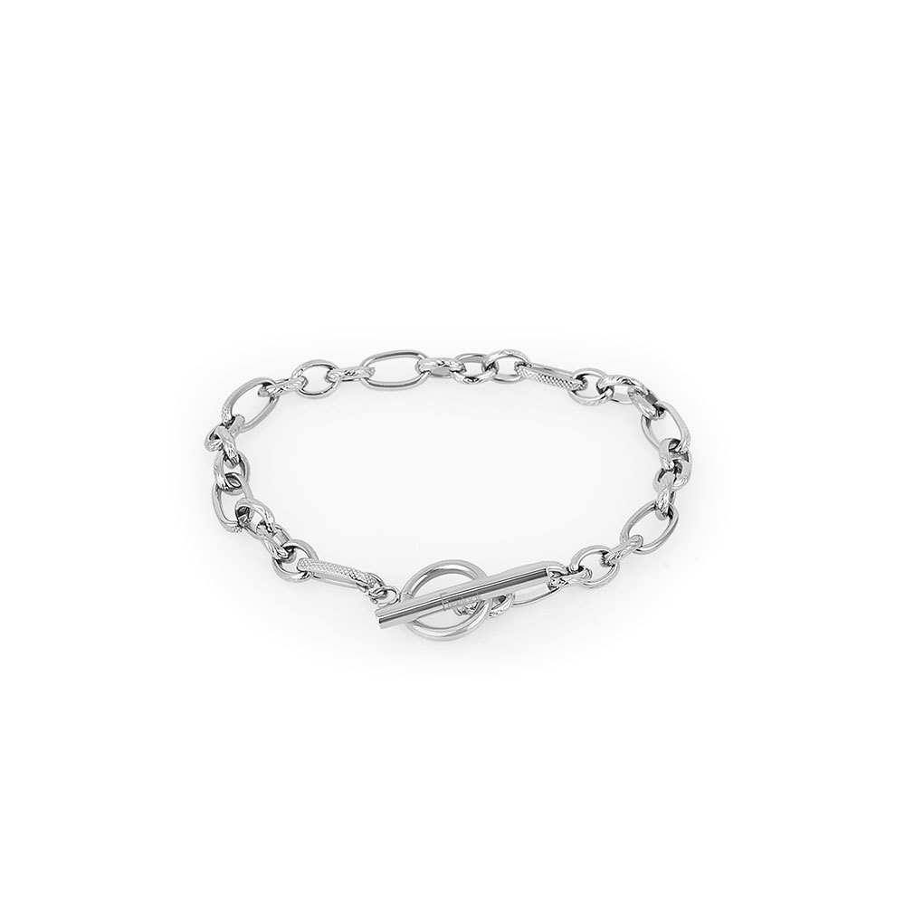 Completeaza-ti tinuta cu o bratara argintie din otel inoxidabil de la Freelook, un accesoriu sofisticat si modern, ideal pentru orice ocazie. Aceasta bratara eleganta este realizata din otel inoxidabil, un material rezistent si durabil, care isi pastreaza stralucirea in timp.