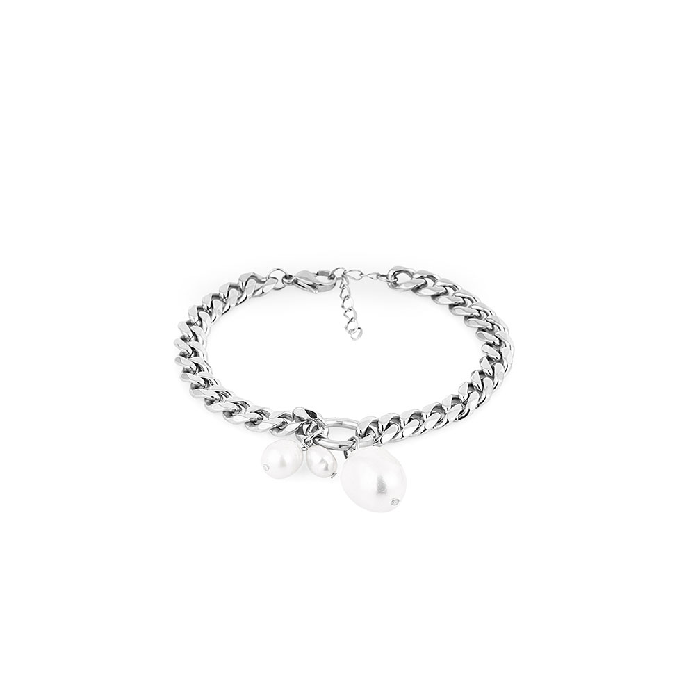 Bratara este decorata cu perle delicate, care adauga un plus de feminitate si rafinament. Lantul cu zale groase ofera un aspect contemporan, in timp ce sistemul de inchidere cu carlig asigura o fixare sigura si confortabila.