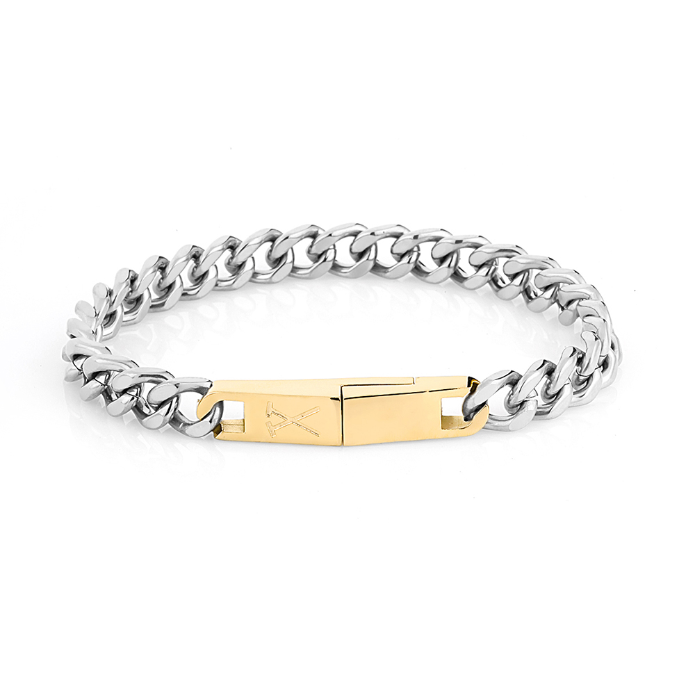 Cu o combinatie armonioasa intre argintiu si auriu, acest model ofera un aspect distinctiv, potrivit atat pentru tinutele casual, cat si pentru cele elegante. Verigile robuste ale lantului asigura un confort optim la purtare, iar sistemul de inchidere magnetica garanteaza siguranta si usurinta in utilizare.