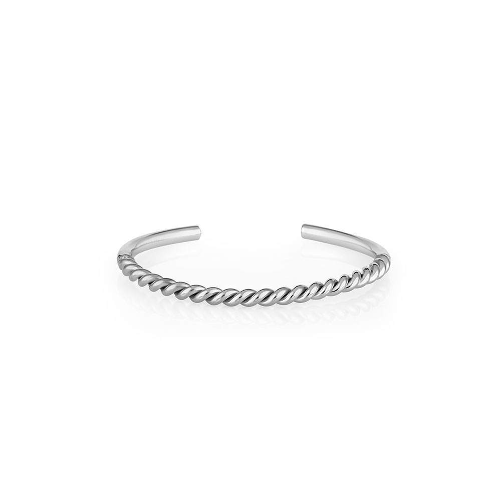 Designul minimalist si modern se remarca printr-o structura semi-deschisa, cu un detaliu rasucit delicat, oferind un aer subtil de rafinament. Culoarea argintie adauga versatilitate, permitandu-ti sa o asortezi cu usurinta atat la tinutele casual, cat si la cele elegante.