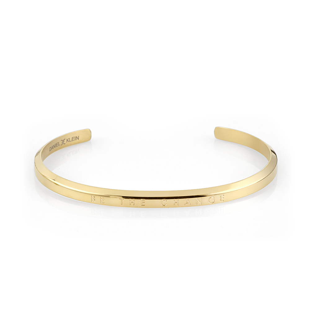 - Design modern: Bratara rigida, deschisa, cu finisaj auriu si mesaj gravat.