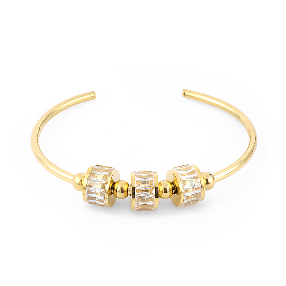 Decorata cu zirconii stralucitoare, bratara adauga o nota de eleganta oricarei aparitii, fiind perfecta atat pentru tinute de zi, cat si pentru ocazii speciale. Designul sau deschis, cu sistem de inchidere reglabil, permite o potrivire confortabila si sigura pe incheietura.