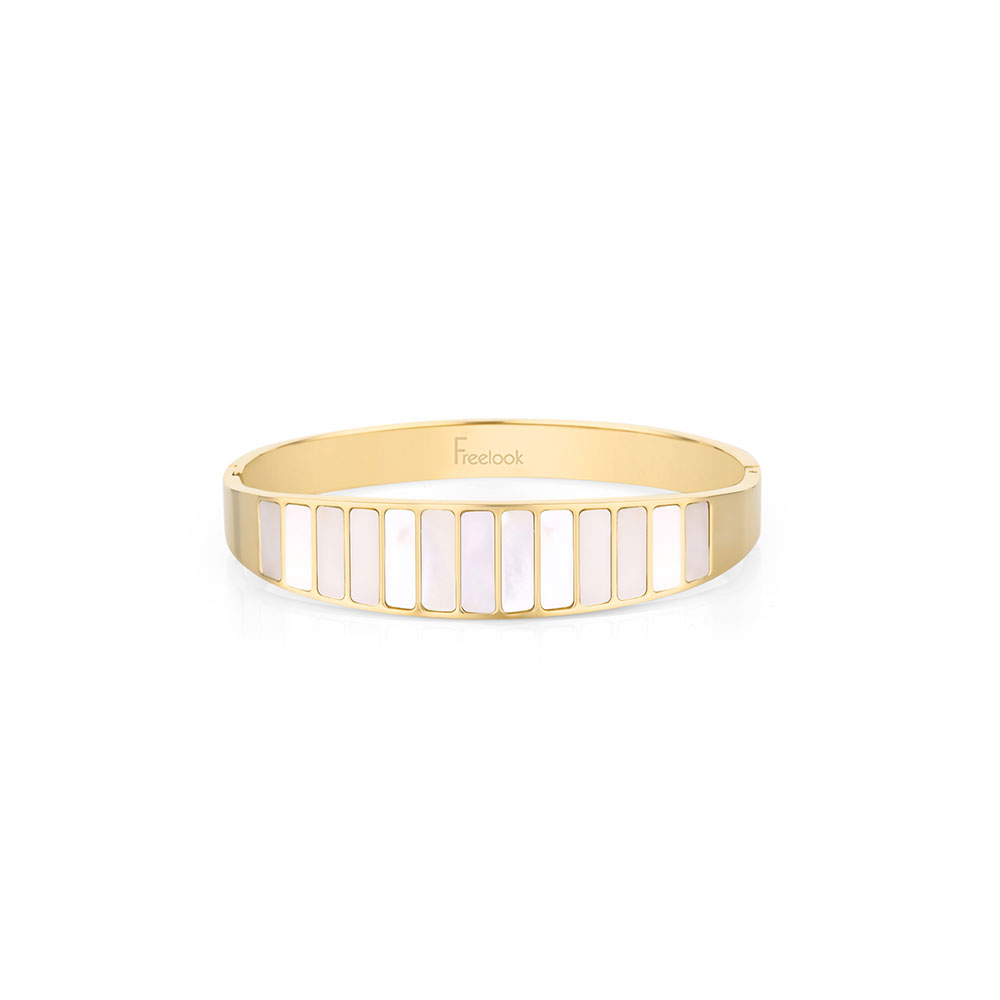 Decorata cu insertii delicate de sidef, bratara reflecta lumina intr-un mod spectaculos, oferindu-i un aspect luxuriant. Culoarea aurie adauga un aer clasic si versatil, potrivindu-se perfect atat tinutelor casual, cat si celor elegante.