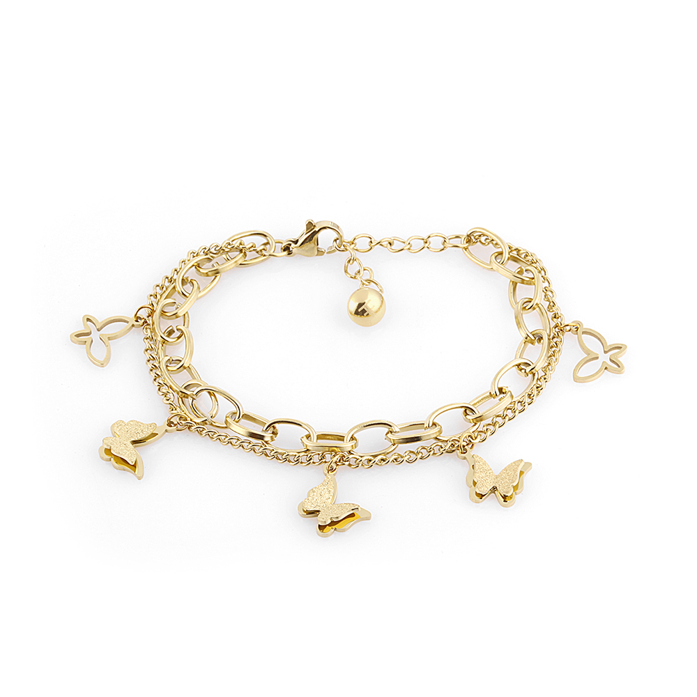 Adauga un plus de eleganta tinutelor tale cu aceasta bratara aurie Freelook, un accesoriu rafinat realizat din otel inoxidabil de inalta calitate. Cu un design modern si sofisticat, bratara este decorata cu charm-uri delicate in forma de fluturi, simbolizand frumusetea si libertatea.