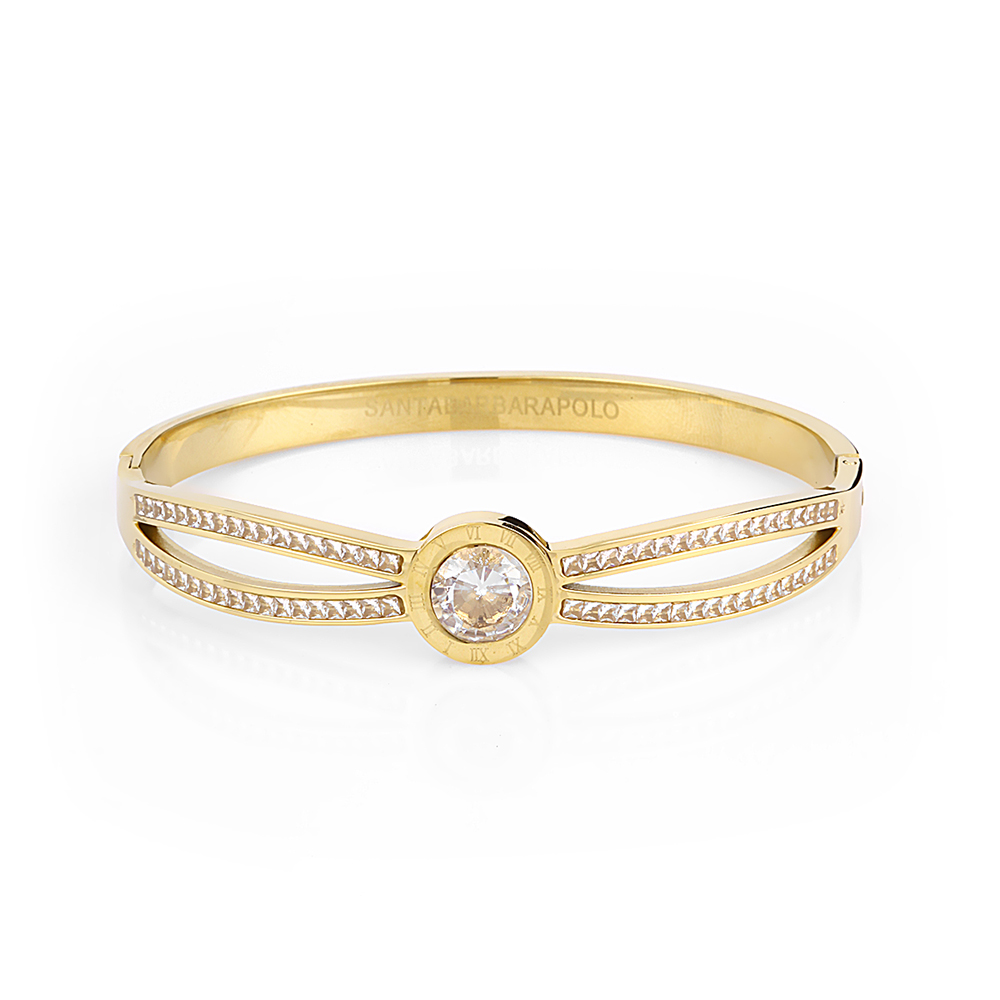 Adauga un plus de eleganta tinutelor tale cu bratara aurie Santa Barbara Polo, un accesoriu rafinat si sofisticat, ideal pentru orice ocazie. Fabricata din otel inoxidabil de inalta calitate, aceasta bratara impresioneaza prin designul sau modern si detaliile atent lucrate.