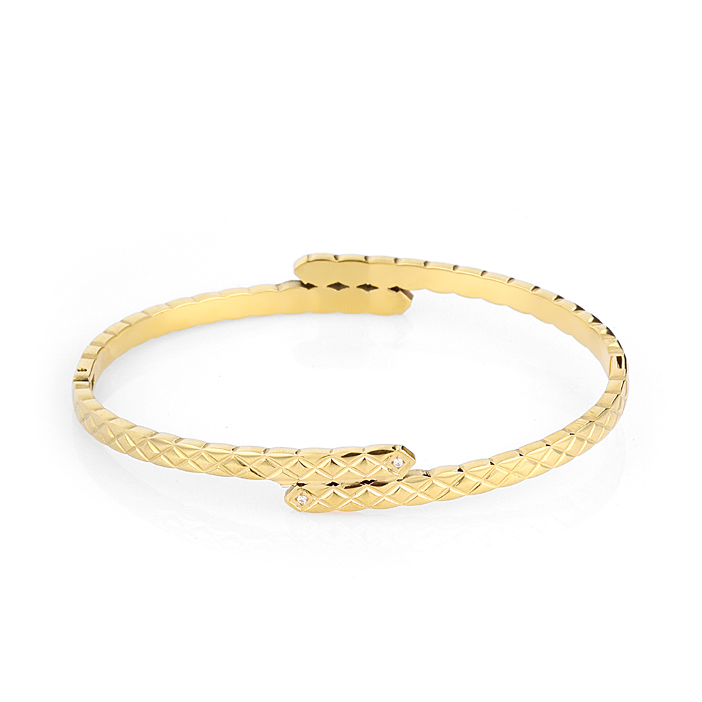 Bratara are un model distinctiv cu textura incrustata, oferindu-i un aspect rafinat si unic. Decorata cu zirconii stralucitoare, aceasta piesa adauga o nota subtila de glamour, potrivindu-se perfect atat tinutelor de zi, cat si celor de seara.