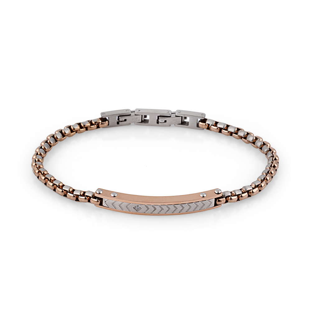 Exprima-ti stilul cu o bratara eleganta pentru barbati, semnata Daniel Klein, realizata din otel inoxidabil de inalta calitate. Acest accesoriu sofisticat imbina nuantele auriu rose si argintiu, oferind un design modern si versatil, potrivit atat pentru tinutele casual, cat si pentru cele elegante.