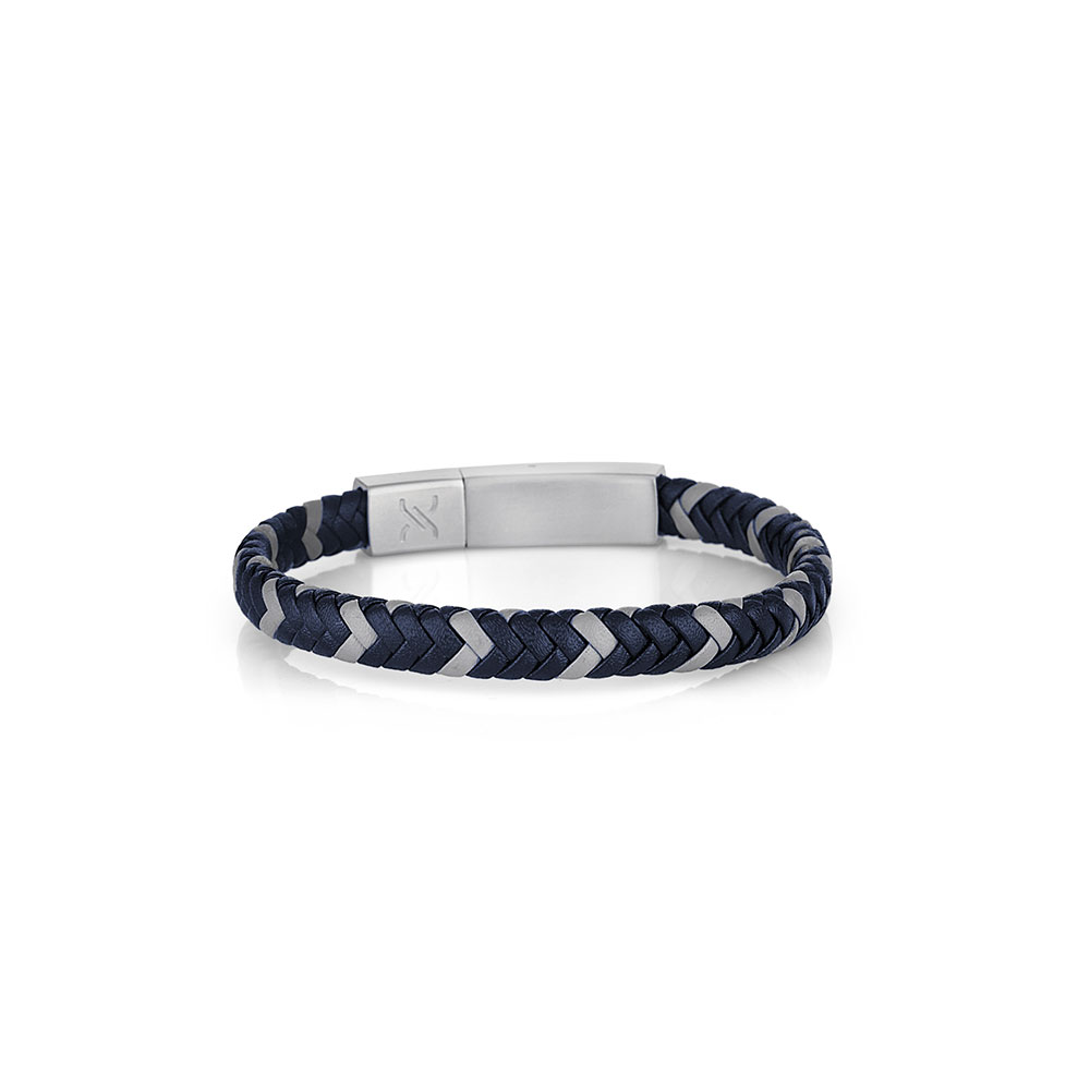 Fabricata din piele naturala bleumarin, impletita cu grija pentru un efect vizual sofisticat, si completata de elemente din otel inoxidabil gri, aceasta bratara este ideala pentru orice ocazie. Designul bicolor adauga un contrast subtil, dar impunator, oferindu-ti un accesoriu versatil ce poate fi purtat atat la tinute casual, cat si la outfituri elegante.