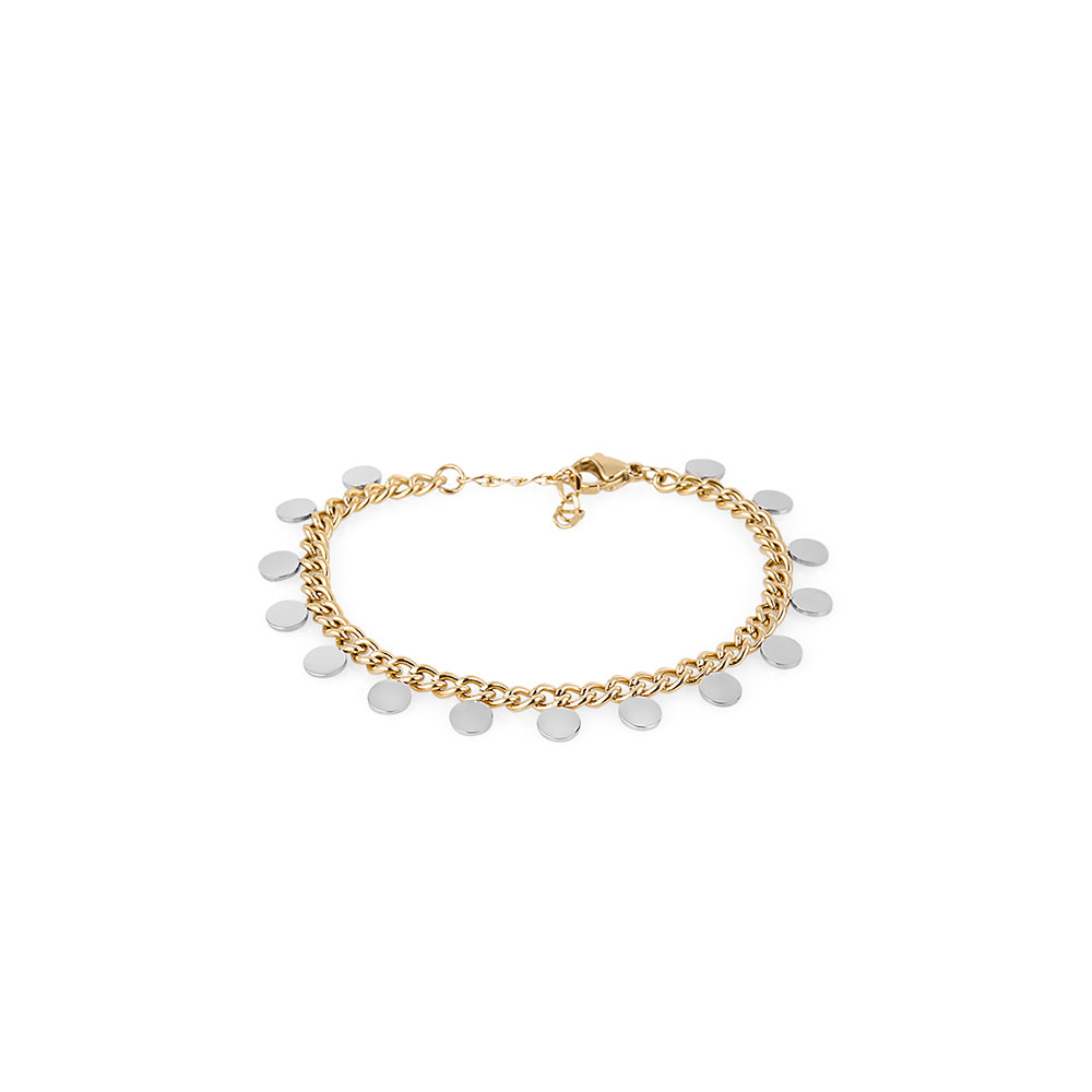 Bratara are un design modern, cu un lant fin si elemente decorative rotunde, ce adauga un plus de stralucire. Datorita sistemului de inchidere tip carlig, aceasta se fixeaza usor si sigur pe incheietura, asigurand confort pe durata intregii zile.
