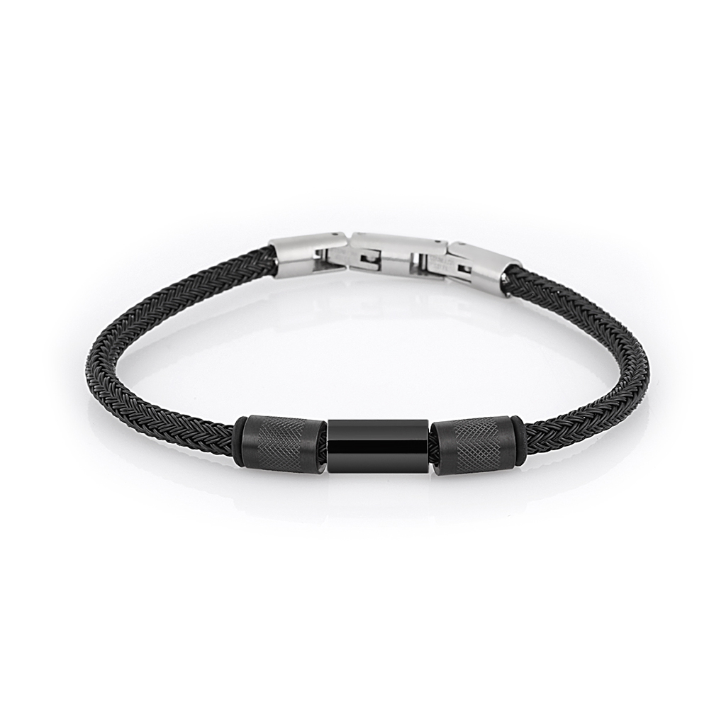 Realizata din piele neagra impletita, bratara ofera un aspect sofisticat si masculin. Elementele din otel inoxidabil argintiu adauga un contrast subtil si elegant, sporindu-i rezistenta si durabilitatea. Detaliile metalice finisate cu atentie confera un aer modern, potrivit atat pentru tinute casual, cat si pentru ocazii speciale.