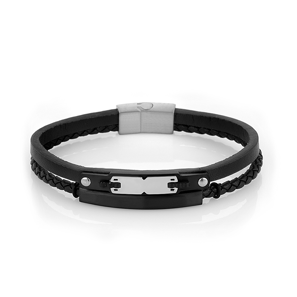 Cu un aspect masculin si sofisticat, aceasta bratara are o combinatie de piele neagra si elemente din inox, oferind un contrast elegant si usor de asortat. Sistemul de inchidere magnetica asigura o fixare sigura si confortabila, permitandu-ti sa o porti intreaga zi fara griji.