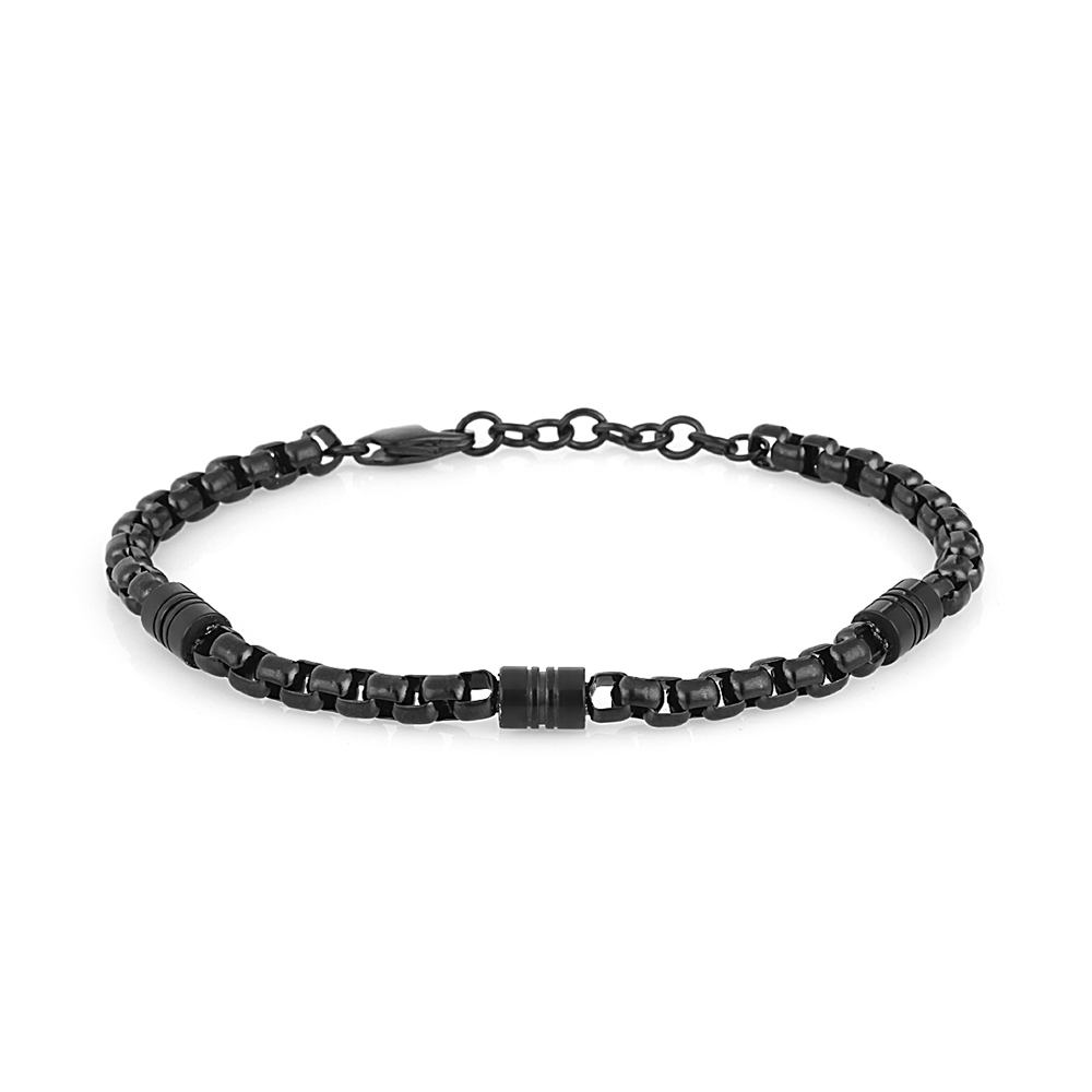 Designul sau modern si sofisticat este accentuat de finisajul negru mat, oferindu-i un aer exclusivist. Cu o lungime de 240 mm si o latime de 4 mm, bratara se potriveste perfect pe incheietura mainii, asigurand confort si un look impecabil. Sistemul de inchidere tip carlig garanteaza o fixare sigura si usoara.