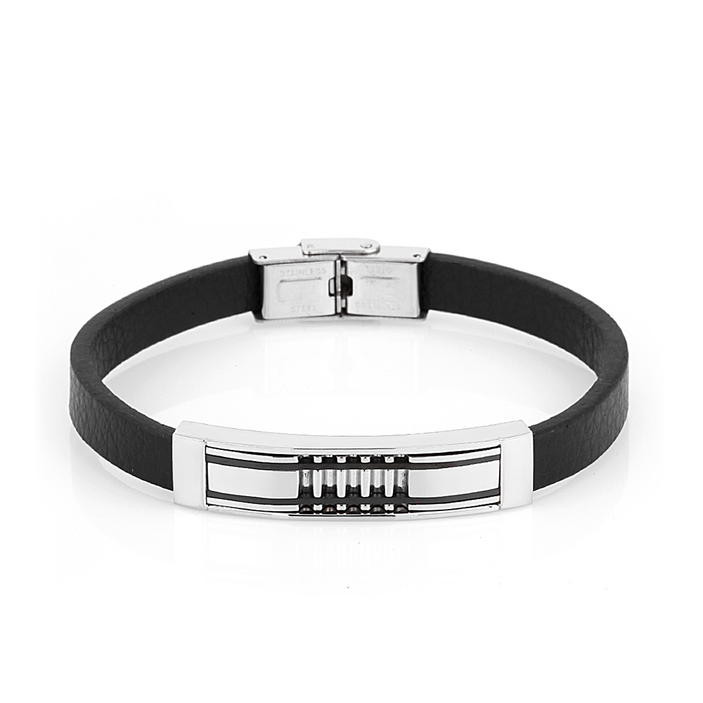 Fabricata din piele naturala neagra si completata de un element central din otel inoxidabil argintiu, aceasta bratara imbina perfect durabilitatea cu estetica masculina. Designul minimalist este accentuat de detaliile metalice atent finisate, oferind un aspect modern si versatil.