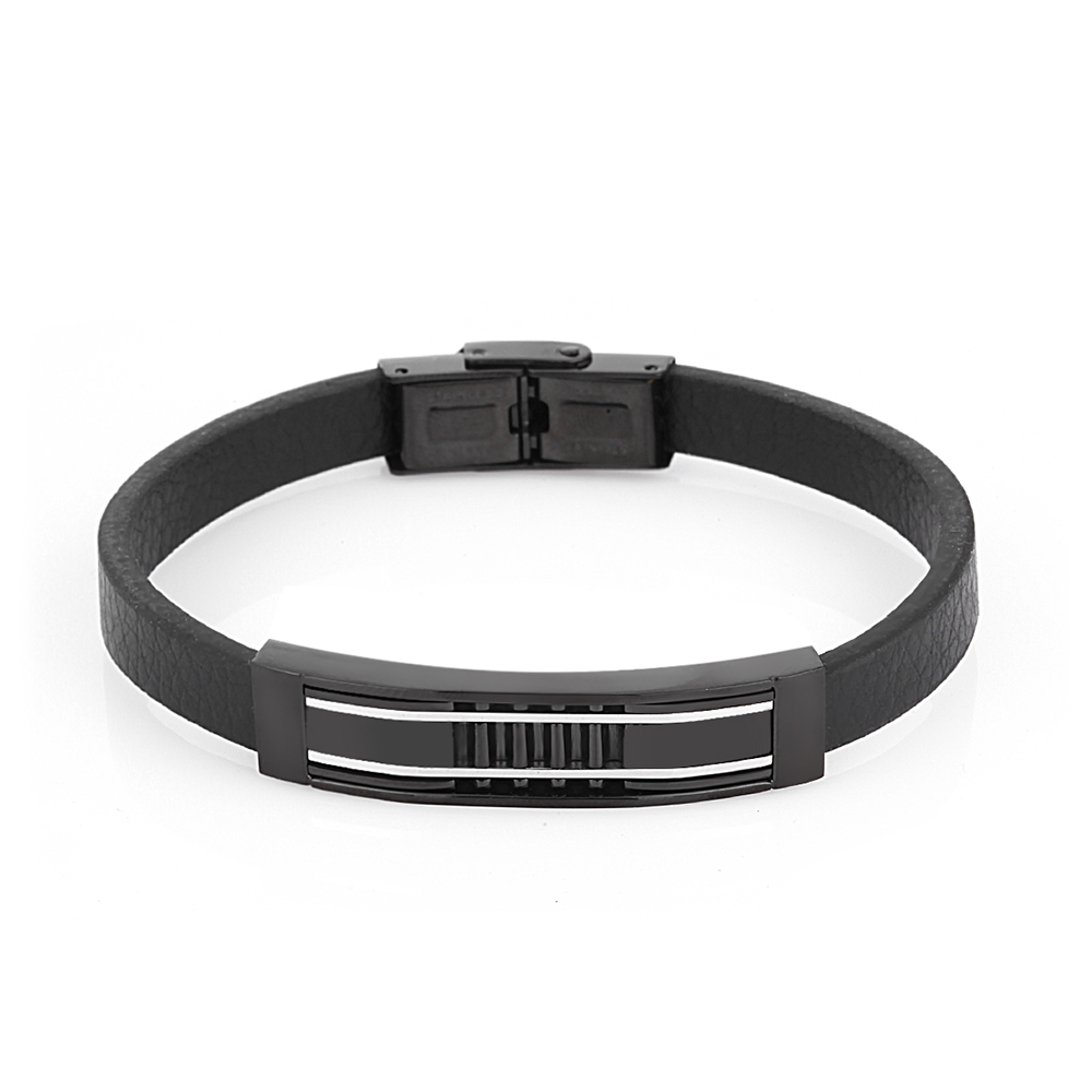 Bratara are o curea din piele neagra, cu o textura fina si placuta la atingere, asigurand confort pe tot parcursul zilei. Elementele metalice sunt realizate din otel inoxidabil, ceea ce garanteaza rezistenta la coroziune si o durabilitate sporita.