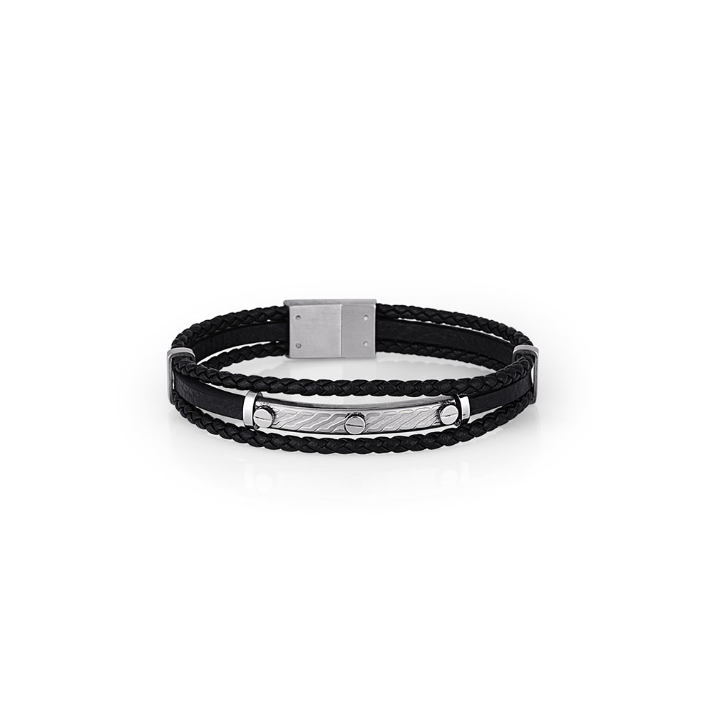 Fabricata din piele naturala de inalta calitate, bratara ofera un aspect sofisticat si o senzatie placuta la purtare. Insertiile din otel inoxidabil argintiu adauga un plus de durabilitate si rezistenta impotriva coroziunii, pastrandu-si aspectul impecabil in timp.