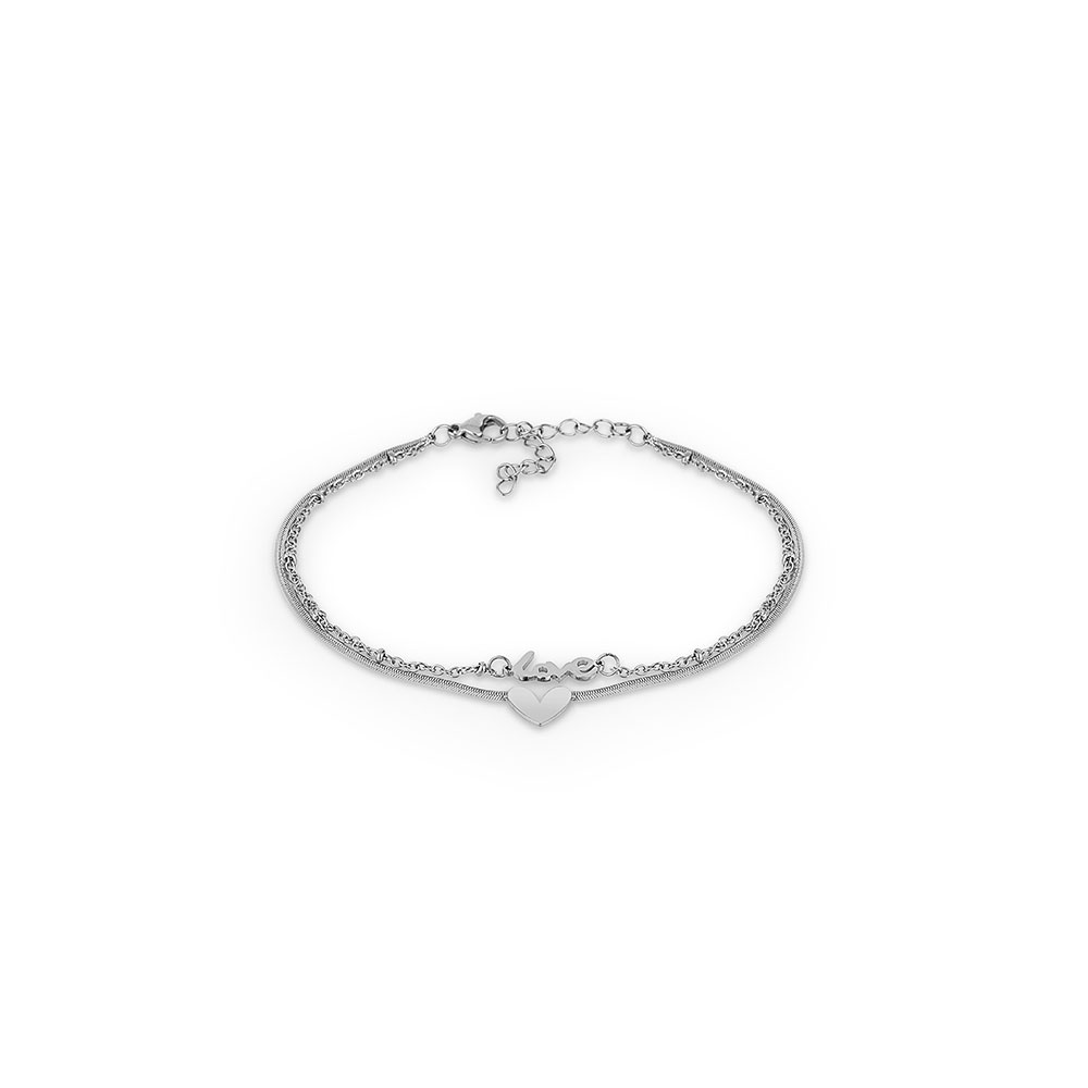 Designul bratarii imbina armonios doua lantisoare subtiri, care se unesc intr-un element central distinctiv: un pandantiv in forma de inima insotit de inscriptia "love". Acest detaliu simbolic face ca bratara sa fie o alegere perfecta pentru a exprima afectiunea si stilul personal.