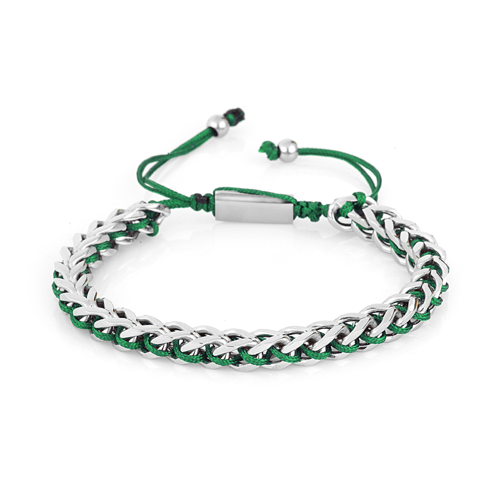 Realizata din otel inoxidabil argintiu si completata de un snur textil verde, aceasta bratara imbina durabilitatea metalului cu flexibilitatea si confortul unui material textil. Designul sau impletit adauga un plus de rafinament, facand-o potrivita atat pentru tinute casual, cat si pentru outfituri mai elegante.