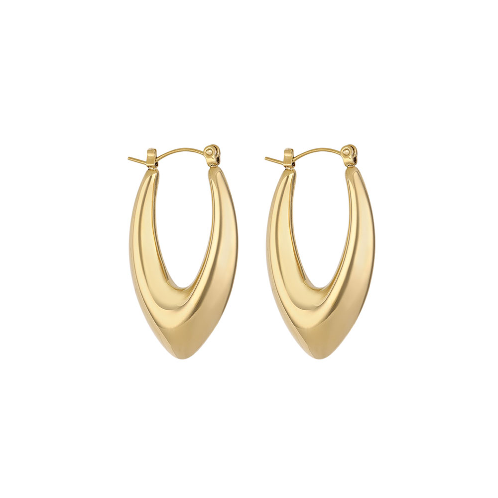 Fabricati din otel inoxidabil de inalta calitate, cerceii sunt rezistenti la coroziune si nu isi pierd stralucirea in timp. Finisajul auriu adauga un plus de stil, oferind un aspect luxos si versatil, potrivit pentru diverse stiluri vestimentare.