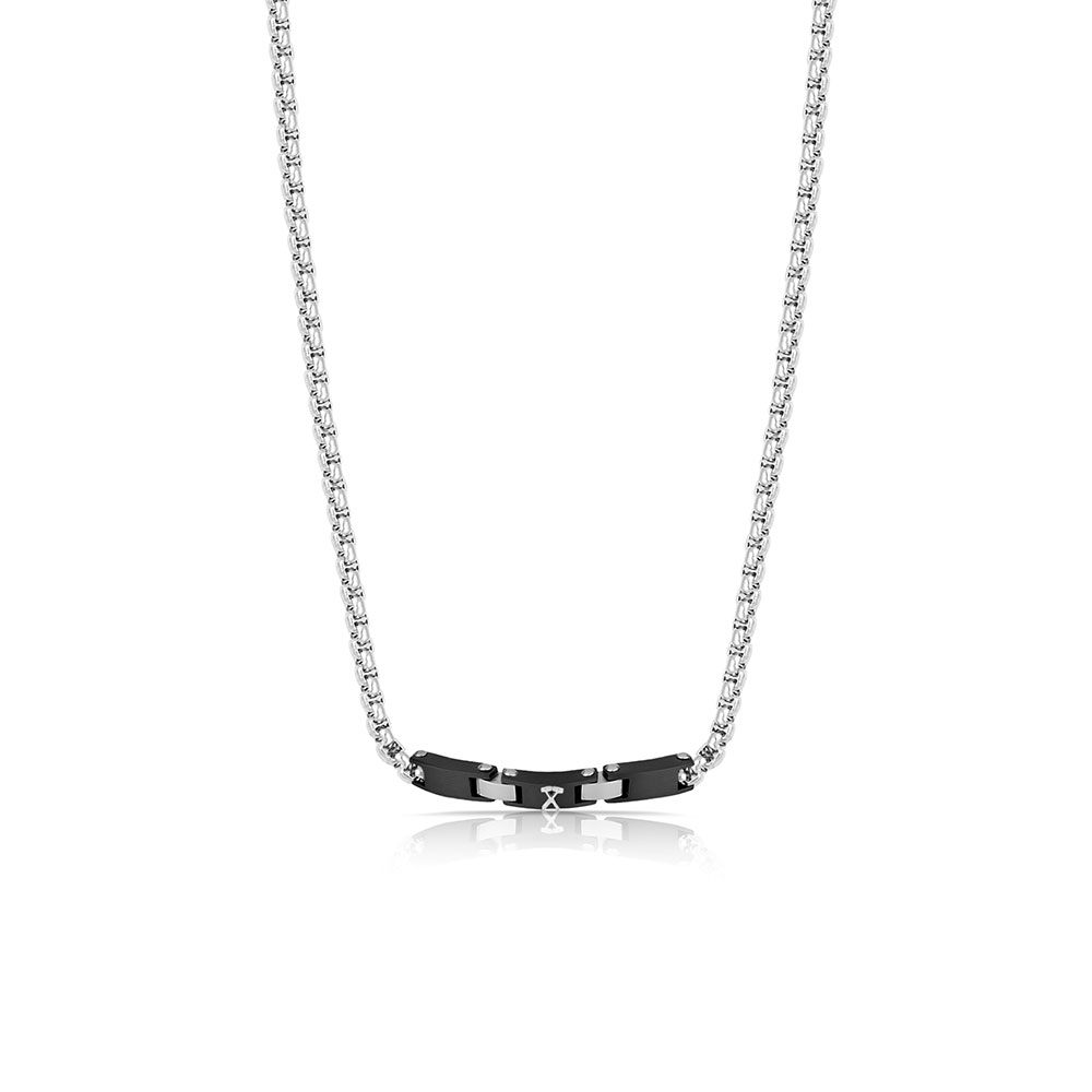 Designul sau impunator include un segment central in nuante de negru si argintiu, oferind un contrast subtil si rafinat. Cu o latime de 3 mm si o lungime de 62 cm, acest lant este potrivit pentru orice tinuta, fie casual, fie eleganta. Sistemul de inchidere cu carlig asigura o fixare sigura si confortabila.