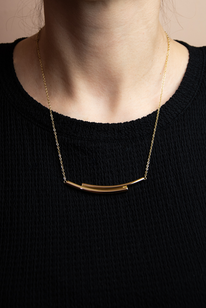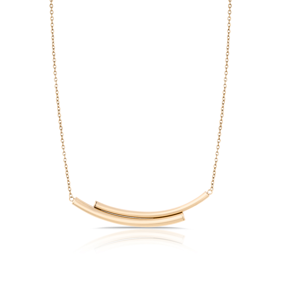 Designul sau minimalist este accentuat de doua elemente arcuite delicate, care adauga un plus de originalitate si eleganta. Finisajul auriu ofera un aspect luxos, perfect pentru orice ocazie, fie ca este vorba de o tinuta casual sau de un eveniment special.