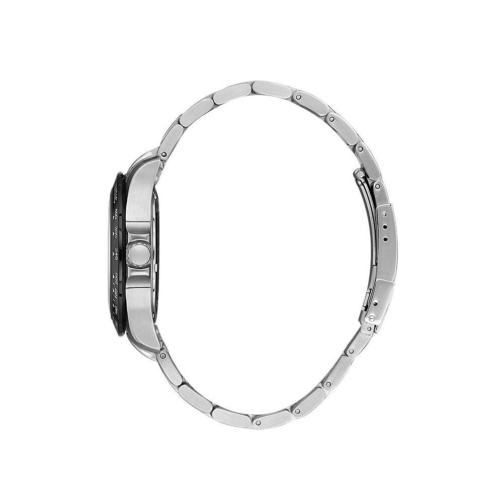Carcasa rotunda de 42 mm, realizata din otel inoxidabil argintiu, completeaza armonios designul, in timp ce bratara din acelasi material, cu sistem de inchidere fluture, garanteaza confort si siguranta la purtare.