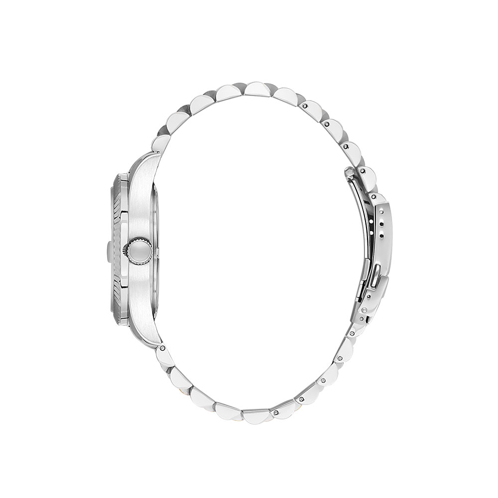 Dotat cu un mecanism japonez Quartz Time Module Vj52b11, ceasul ofera o precizie impecabila cu o abatere de numai ± 20 secunde pe luna. Carcasa rotunda din otel inoxidabil argintiu, cu diametrul de 41 mm si grosime de 12 mm, alaturi de geamul din cristal mineral, asigura durabilitate si rezistenta la zgarieturi.