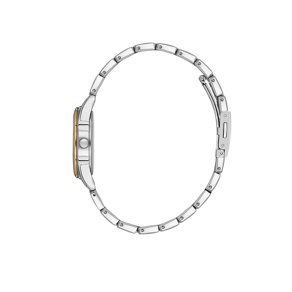 - Materialul carcasei din aliaj metalic si bratara de otel inoxidabil in culori argintiu si auriu ofera un contrast vizual impresionant.