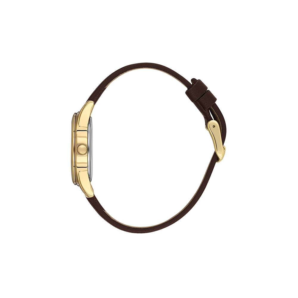 Colectia Arcadia se distinge prin designul sau timeless si finisajele de inalta calitate. Cadranul argintiu, impreuna cu carcasa aurie si cureaua din piele cafenie, confera acestui ceas un aspect luxuriant, ideal pentru orice tinuta, de la cea casual la cea de seara.