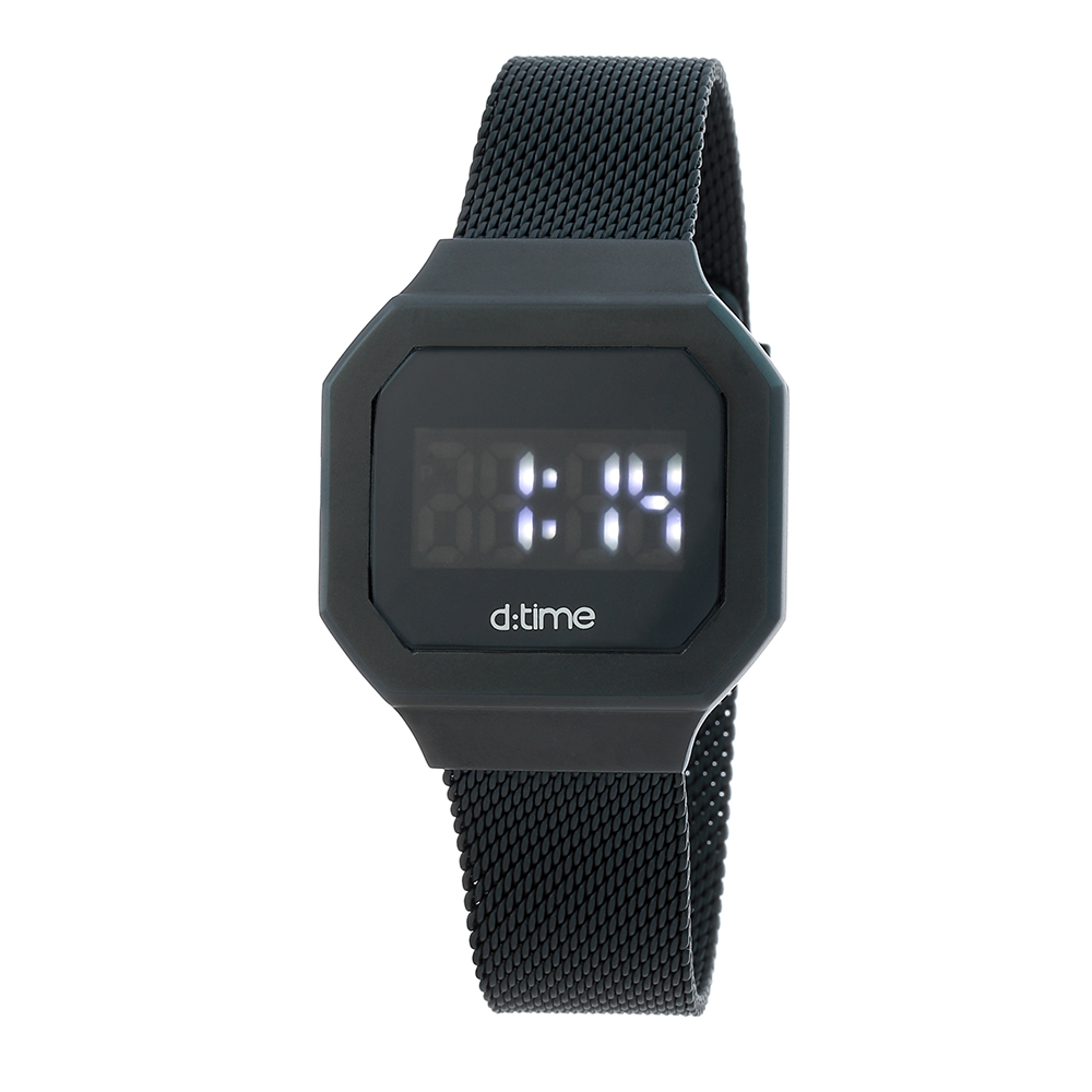 Ceas cu display touch screen; bratara tip mesh, cu inchizatoare reglabila; afiseaza data curenta si ora in format 12/24; functie calendar automata.