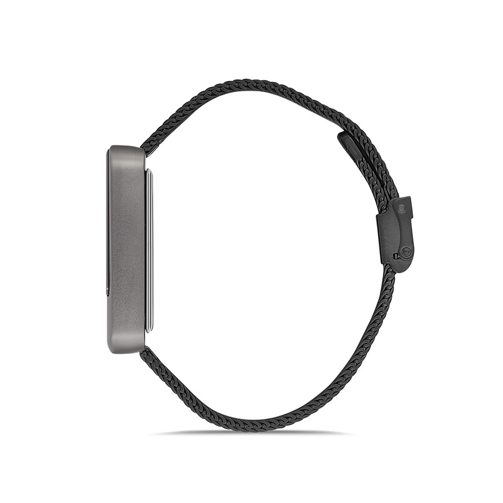 Ceas cu display touch screen; bratara tip mesh, cu inchizatoare reglabila; afiseaza data curenta si ora in format 12/24; functie calendar automata.