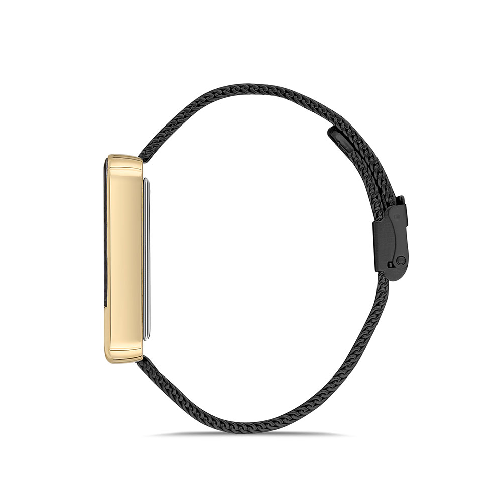 Ceas cu display touch screen; bratara tip mesh, cu inchizatoare reglabila; afiseaza data curenta si ora in format 12/24; functie calendar automata.
