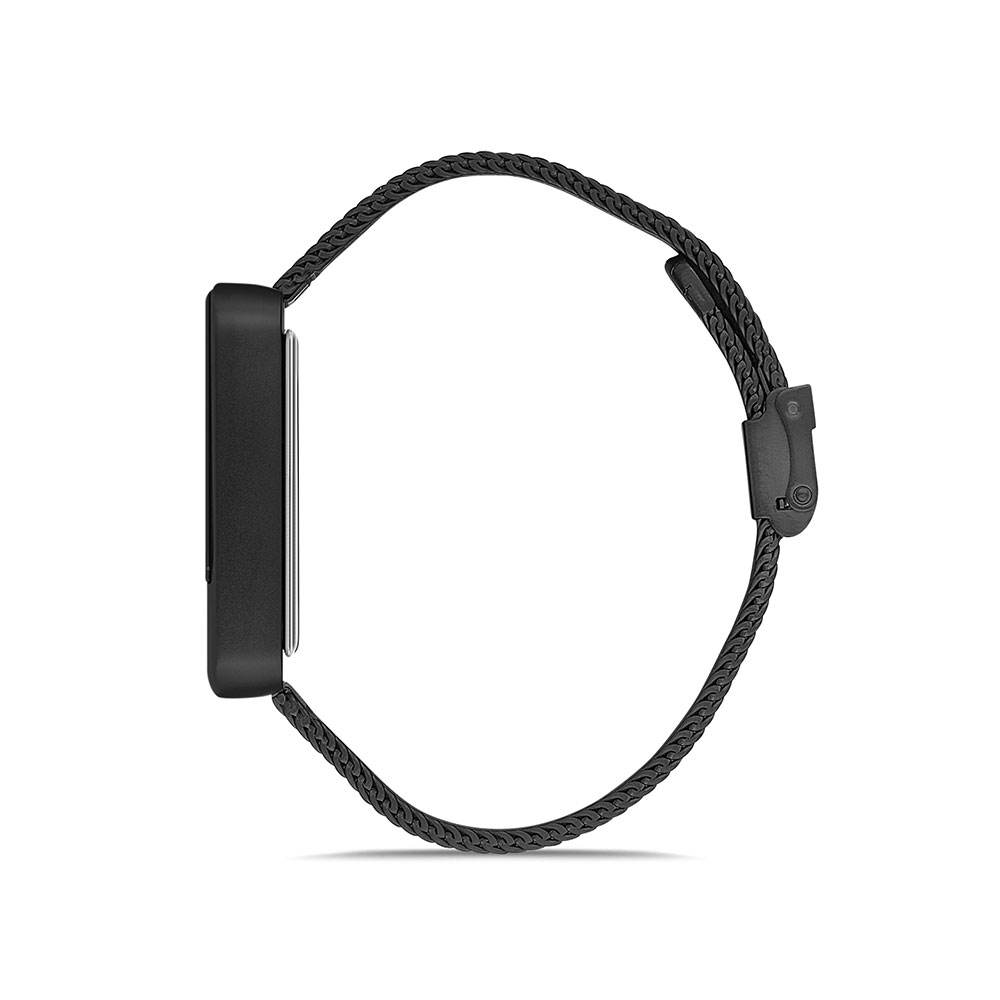 Ceas cu display touch screen; bratara tip mesh, cu inchizatoare reglabila; afiseaza data curenta si ora in format 12/24; functie calendar automata.
