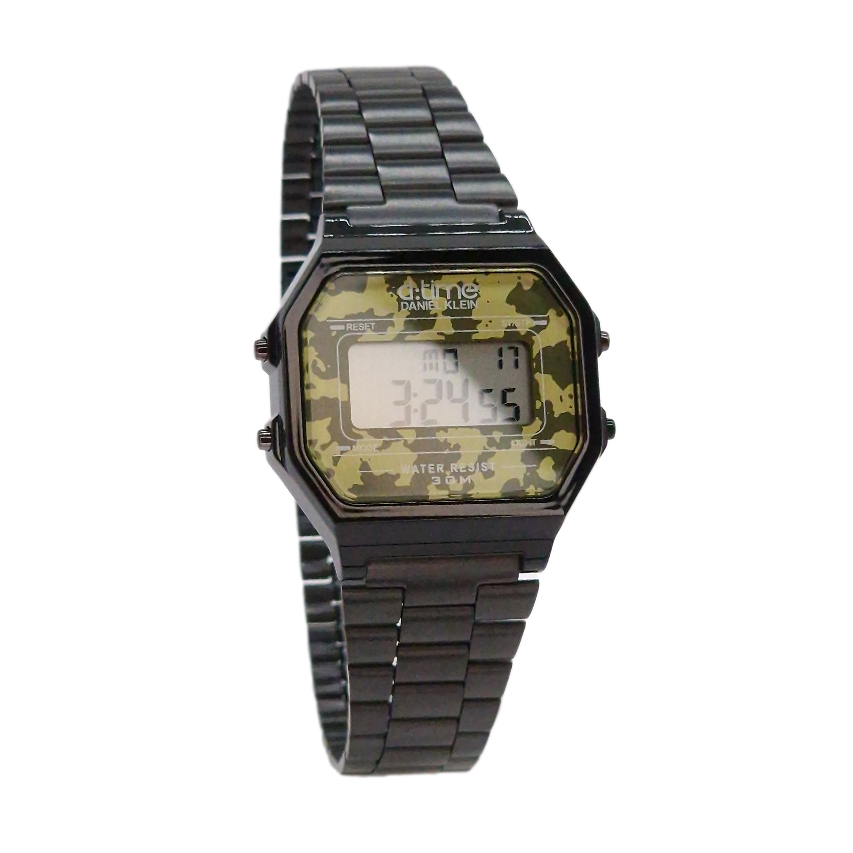 Acest ceas digital impresioneaza prin designul sau octogonal, completat de un cadran in nuante army verde, ce adauga un aer distinct si indraznet. Carcasa din plastic negru asigura un aspect modern si rezistenta sporita, in timp ce bratara din otel inoxidabil negru ofera confort si durabilitate.