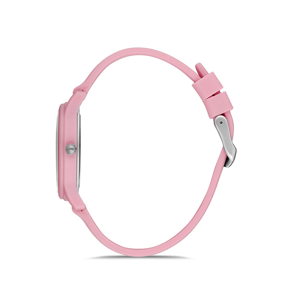 Carcasa rotunda de 36 mm este confectionata din plastic usor, ceea ce face ca acest ceas sa fie extrem de confortabil la purtare. Cureaua din silicon roz se muleaza perfect pe incheietura, oferind un confort sporit pe durata intregii zile. Sistemul de inchidere cu catarama asigura o fixare sigura si usoara.