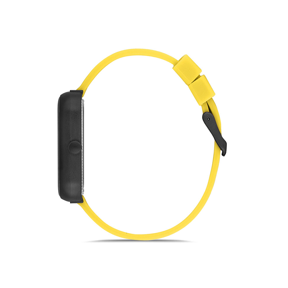 Cureaua din silicon galben nu doar ca adauga un plus de stil, dar ofera si confort pe durata intregii zile. Sistemul de inchidere cu catarama garanteaza o fixare sigura pe incheietura.