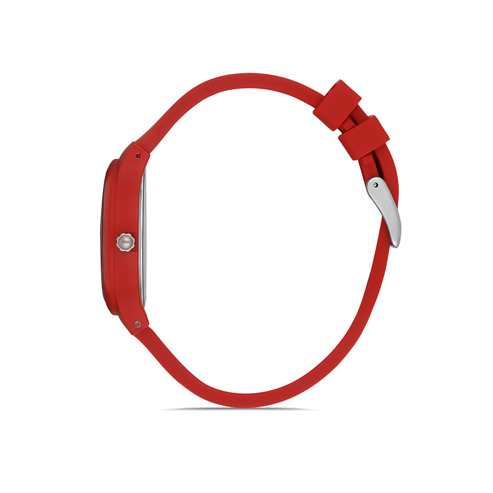 Cureaua din silicon rosu este flexibila si confortabila, avand o lungime utila de 19 cm si o latime de 1.8 cm. Sistemul de inchidere cu catarama asigura o fixare sigura pe incheietura.