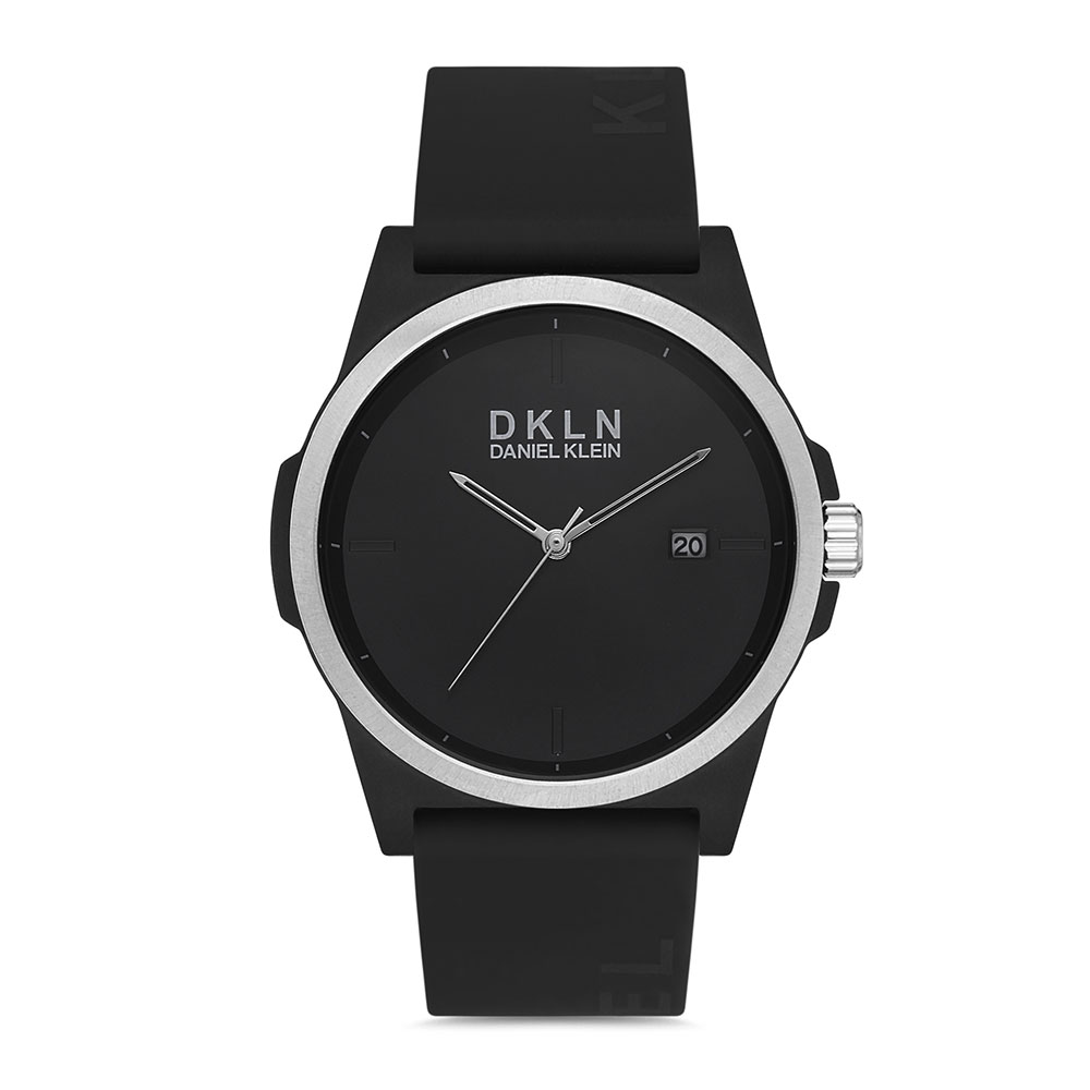 Ceasul dispune de un cadran negru, minimalist, care pune in valoare marcajele discrete si logo-ul Daniel Klein. Carcasa rotunda, cu un diametru de 42 mm, este realizata din plastic rezistent, avand un finisaj negru mat si o rama argintie subtil contrastanta. Geamul din cristal mineral ofera o protectie sporita impotriva zgarieturilor, pastrand un aspect impecabil in timp.