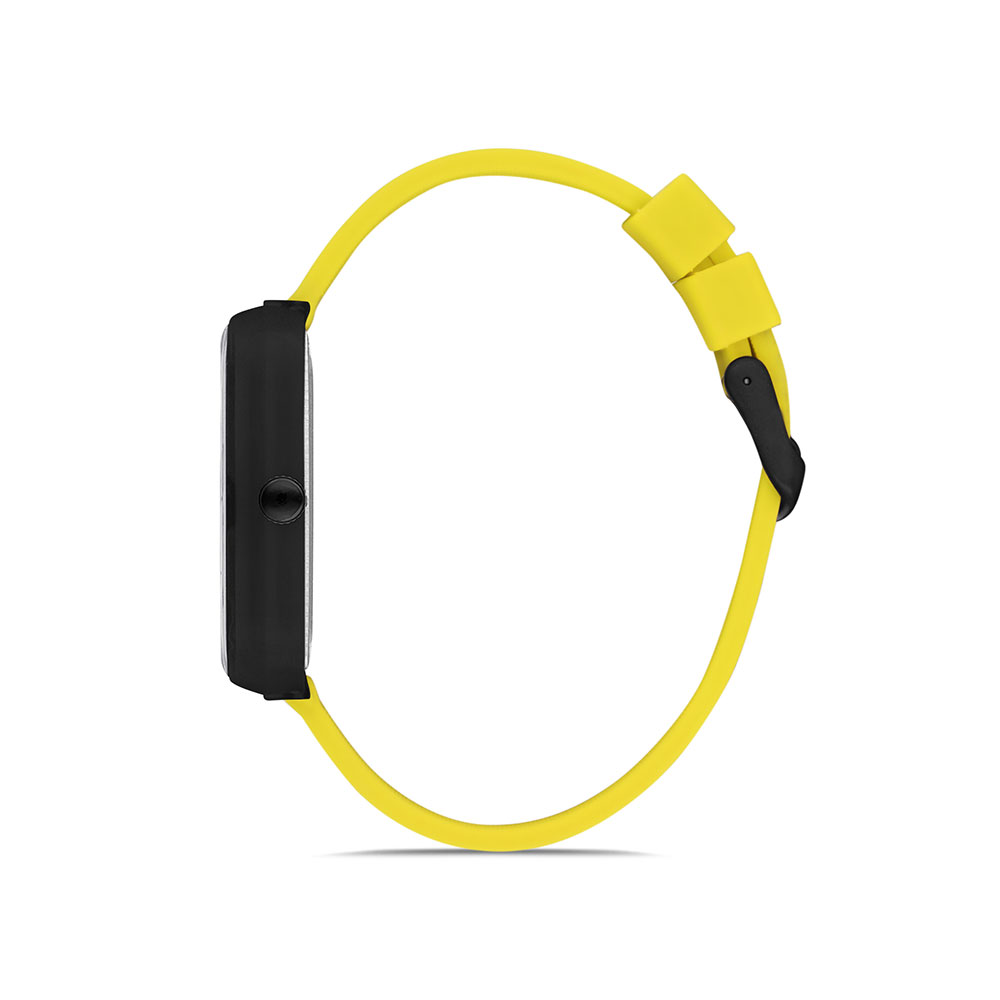 Cureaua din silicon galben este confortabila si rezistenta, fiind potrivita pentru purtare zilnica. Sistemul de inchidere cu catarama garanteaza o fixare sigura si ajustabila.