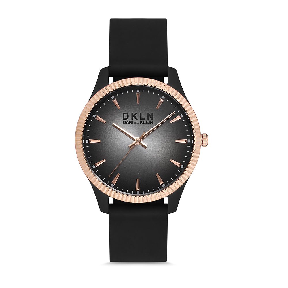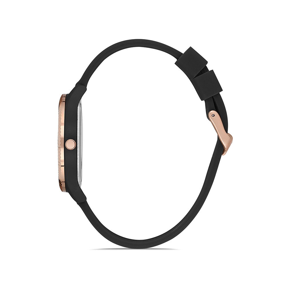 Carcasa neagra cu bezel decorativ auriu rose; curea cu lungimea utila 21 cm si latimea 1.8 cm.