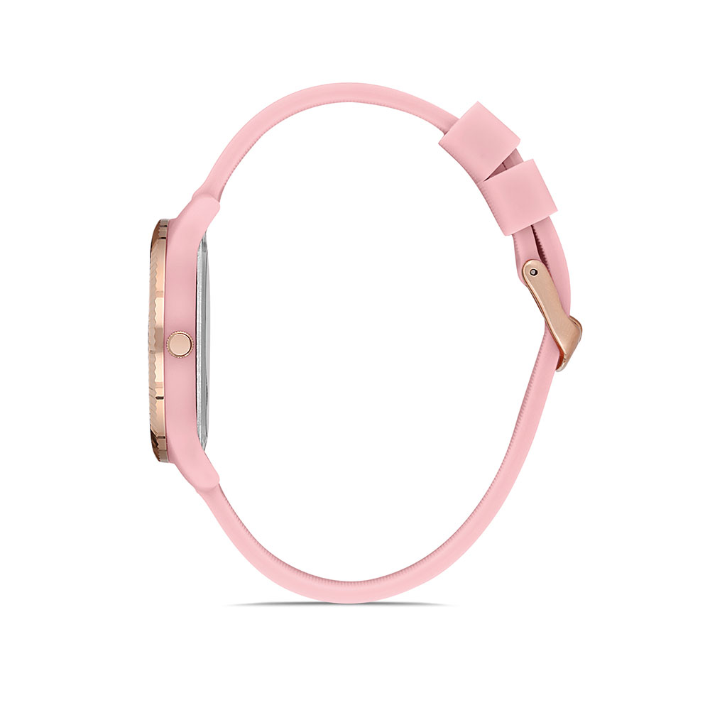 - Design elegant: Carcasa rotunda de 38 mm in nuanta roz, cu un bezel decorativ auriu rose ce adauga un plus de rafinament.