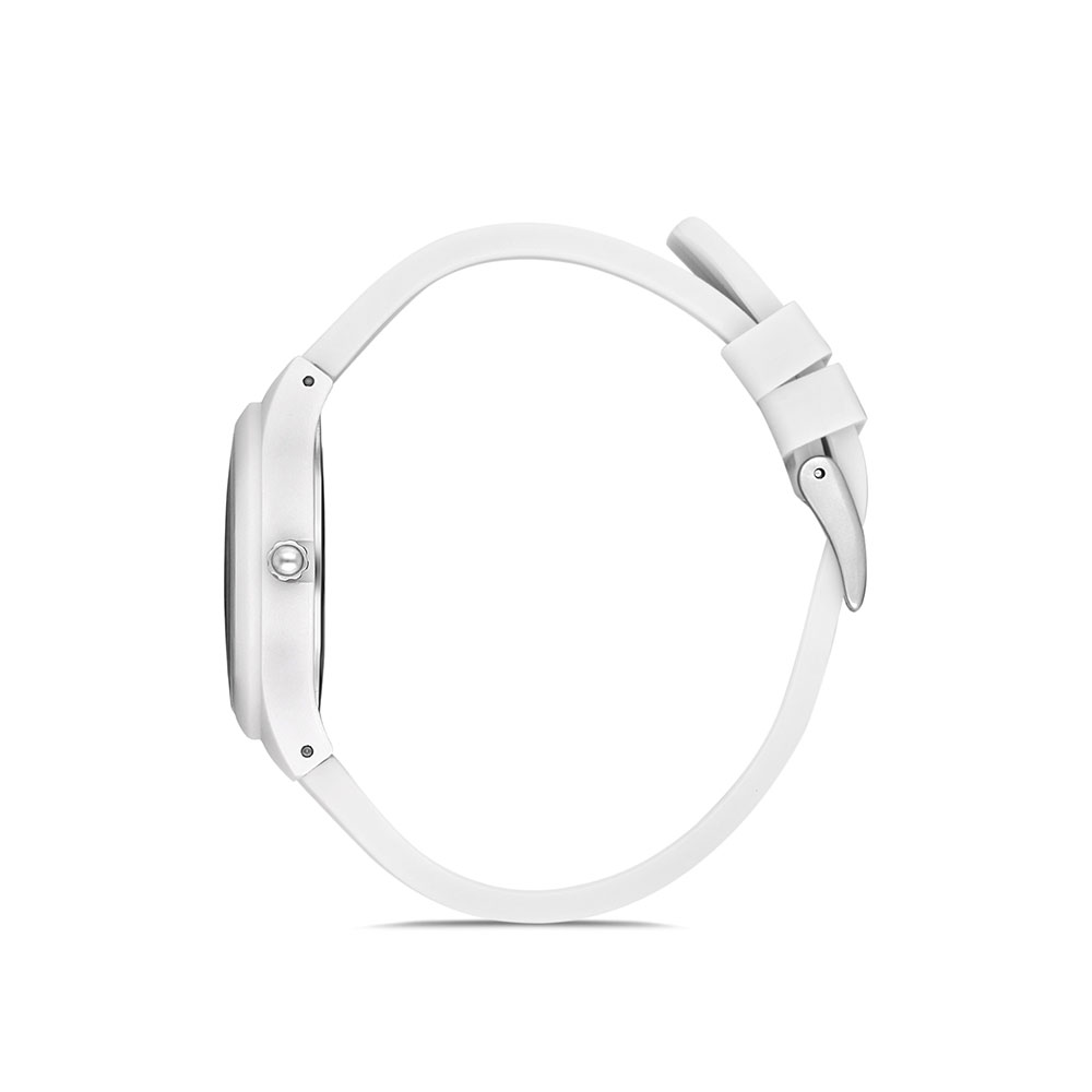 Cureaua alba din silicon asigura un confort sporit la purtare, fiind ideala pentru utilizarea zilnica. Sistemul de inchidere cu catarama garanteaza o fixare sigura pe incheietura.