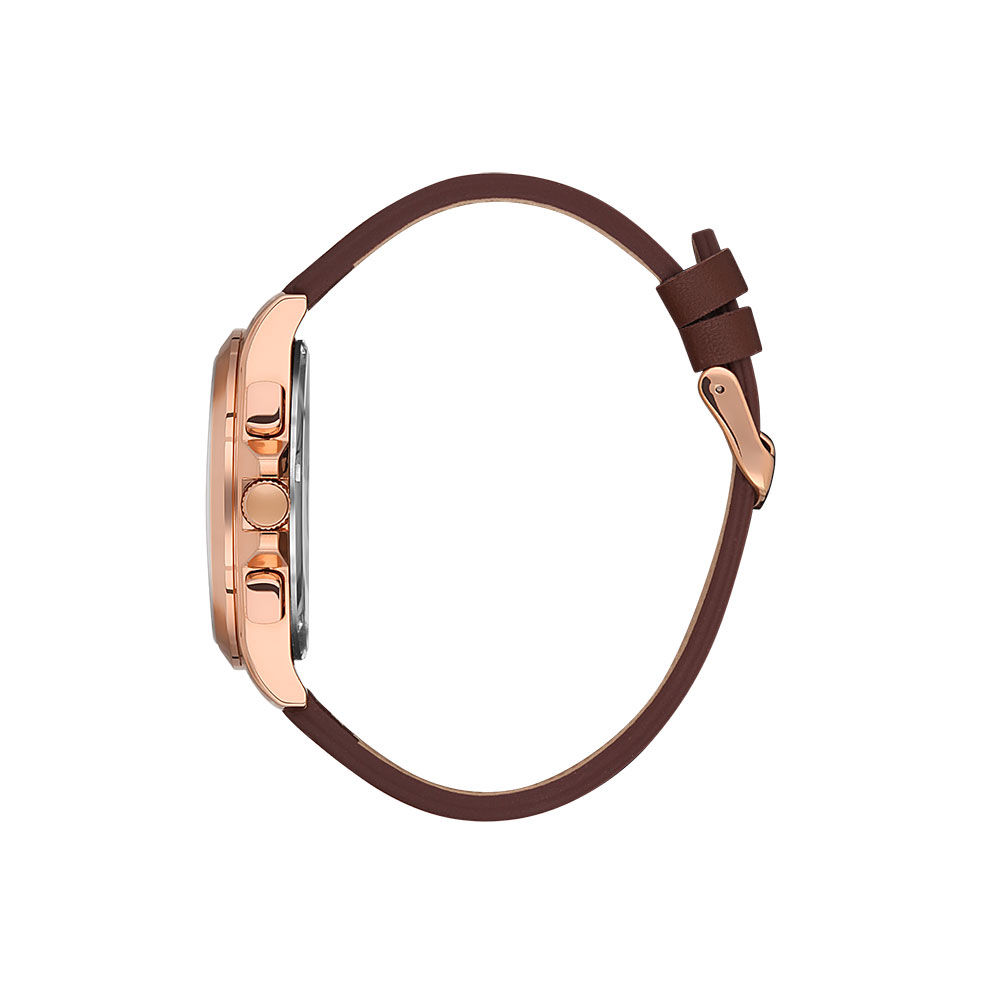 - Carcasa din aliaj metalic cu un finisaj auriu rose, oferind un aspect elegant si modern.