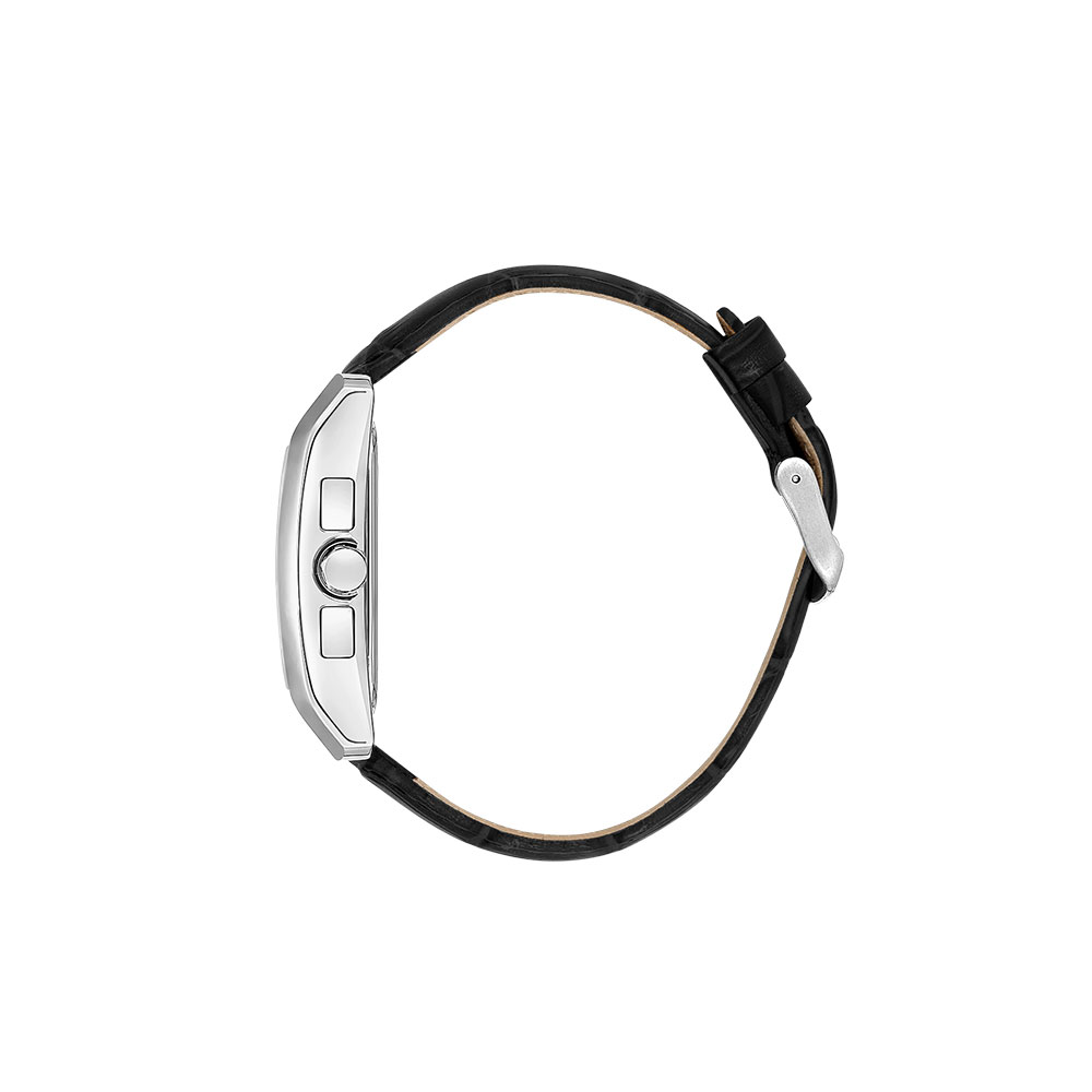 Dotat cu un mecanism quartz japonez de precizie, modelul dispune de afisaj analogic si functii utile precum cronometru si afisare data. Bratara din piele neagra confera un confort sporit si se inchide cu o catarama sigura, adaptandu-se perfect incheieturii.